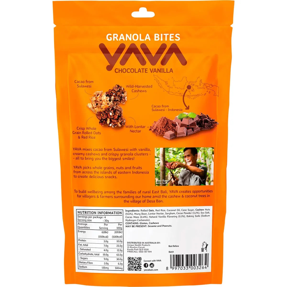 - YAVA mixes cacao from Sulawesi with vanilla, creamy cashews, and crispy granola clusters -- all to bring you the biggest smiles!