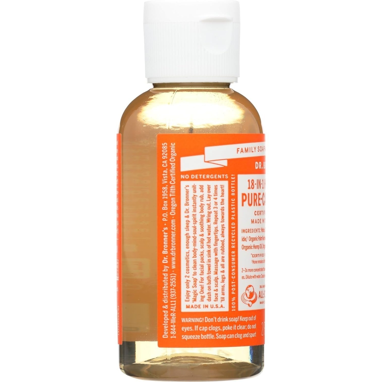 Dr. Bronner’s 18-in-1 Pure-Castile Soaps are good for just about any cleaning task. Face, body, hair – food, dishes, laundry, mopping, pets – clean your house and body with no synthetic preservatives, detergents or foaming agents – none!