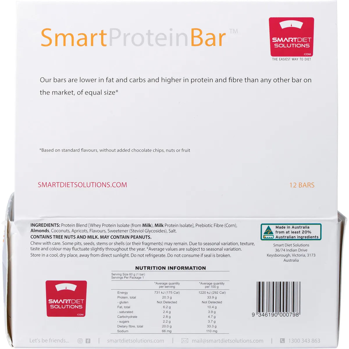 Introducing SMART PROTEIN BAR Apricot Coconut Protein Bar, now available in a convenient pack of 12! Made with all-natural ingredients, this protein bar packs a delicious punch of apricot and coconut flavors. With an impressive 60g of protein per bar, it's the perfect post-workout snack for active individuals looking to fuel their bodies and reach their fitness goals.